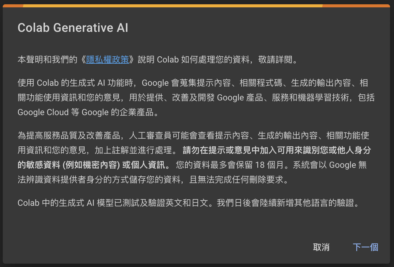 Click the first link with “Google Colab” and from Google