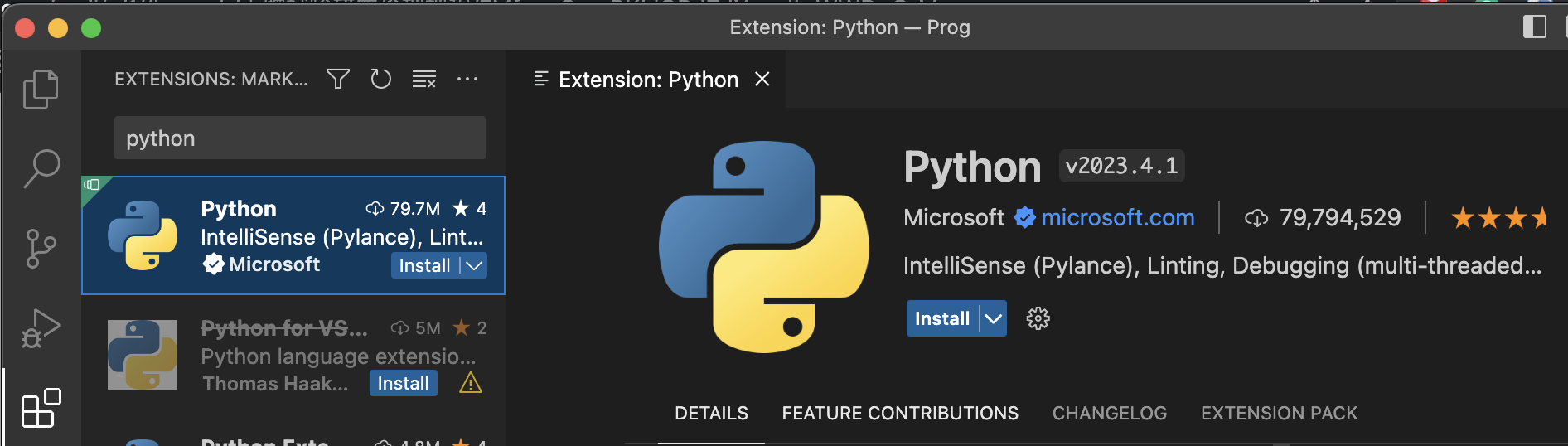 In VS Code, click Extensions, search “python”, and install the extension